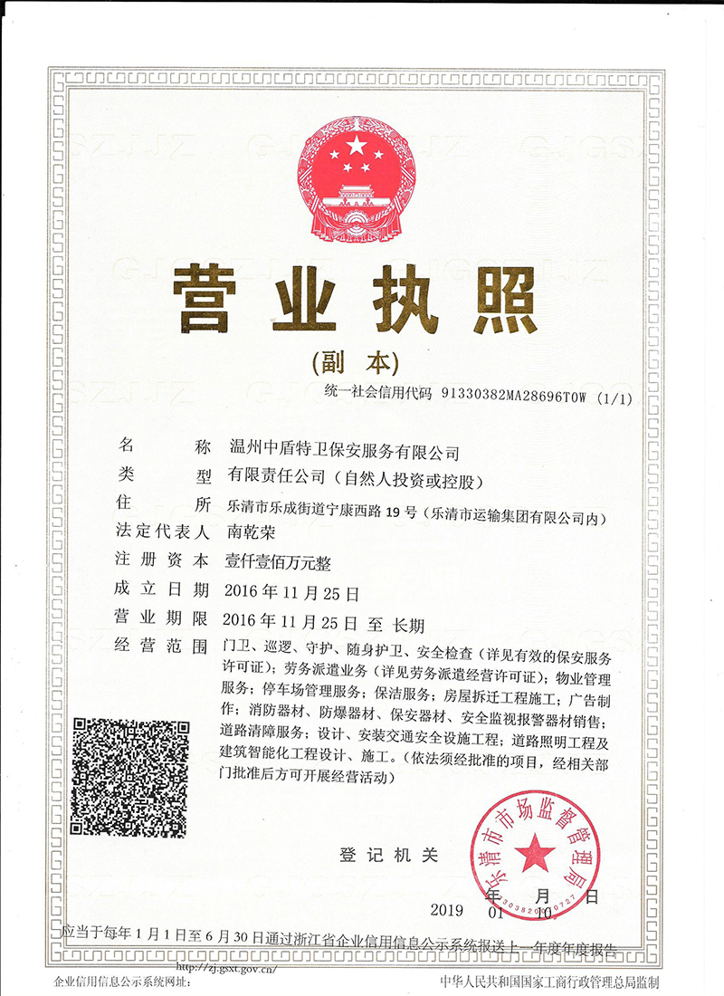 主要经营安保服务、安防器材、劳务派遣、业务管理等